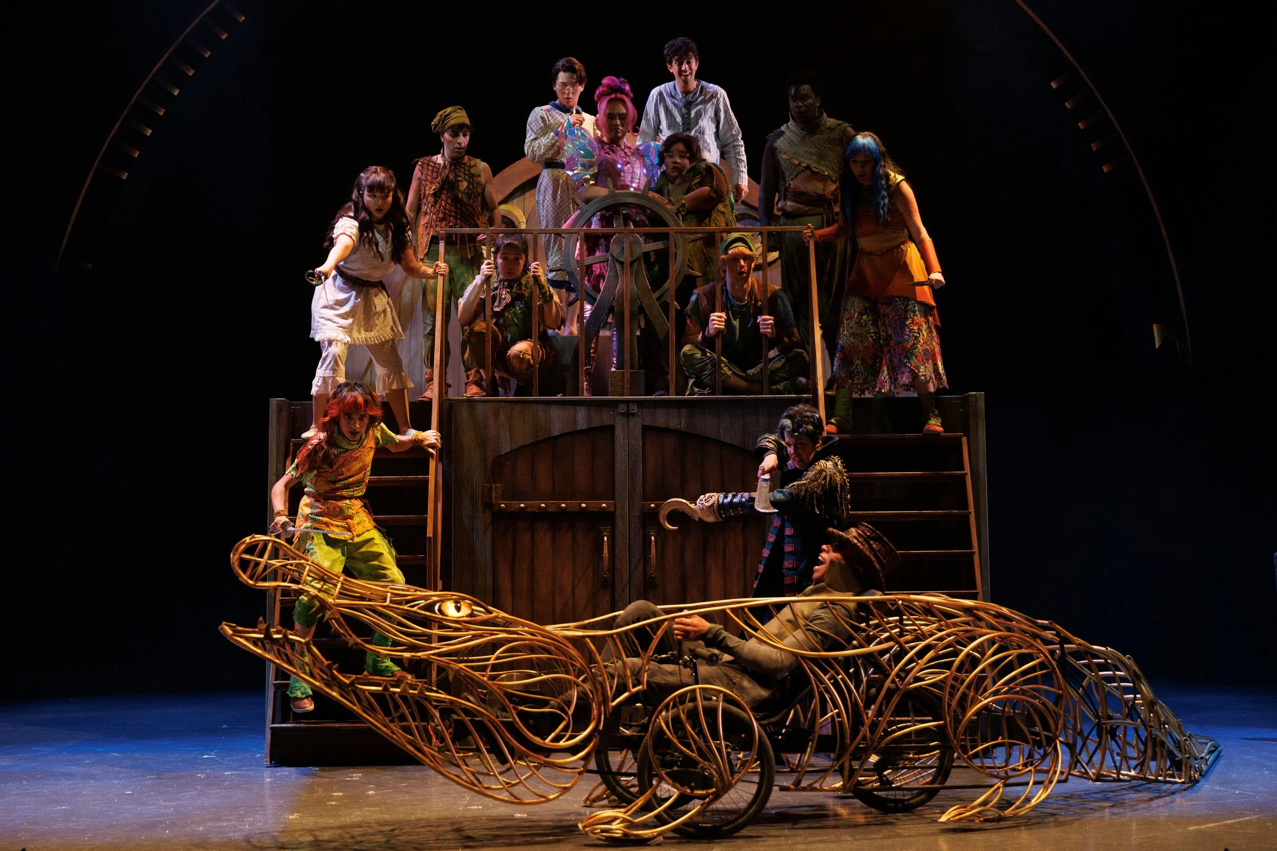 Cast: Cynthia Jimenez-Hicks, Jake Runeckles, Laura Condlln, Nestor Lozano Junior, Tara Sky, George Absi, Sean Arbuckle, David Ball, Noah Beemer, James Daly, Aidan DeSalaiz, Justin Eddy, Charo Foo Tai Wei, Sara-Jeanne Hosie, Wahsontí:io Kirby, Ayrin Mackie, Marcus Nance, David Andrew Reid, Agnes Tong, Chris Vergara, Michael Wamara, Harmony Yen Adaptor: Ella Hickson Director: Thomas Morgan Jones Set and Costume Designer: Robin Fisher Lighting Designer: Arun Srinivasan Composer and Sound Designer: Romeo Candido Fight and Intimacy Director: Anita Nittoly Choreographer: Jera Wolfe Flying Effects: ZFX Assistant Director: Max Cameron Fearon Associate Set and Costume Designer: Julia Holbert Assistant Set Designer: Jung A Im Assistant Costume Designer: Claudia Tam Assistant Lighting Designer: B.C. Batty Assistant Lighting Designer: Emilie Trimbee Assistant Sound Designer: Clarence (CJ) Jura Associate Fight Director: David Chinchilla Assistant Fight Director: Nicolas Van Burek Assistant Choreographer: Miyeko Ferguson Stage Manager: Kim Lott Assistant Stage Managers: Holly Korhonen, Madison Kalbhenn, The. John Gray Apprentice Stage Manager: Jess Gordon